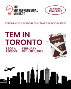 The Entrepreneurial Mindset is accepting interest from University of Manitoba students who would like to participate in TEM’s Elevator Pitch Competition (In an Elevator). Please enter in your info in the form below. Keep in mind, interest will not guarantee your spot in the competition, but will get you first access when applications open.